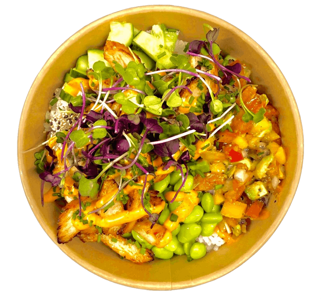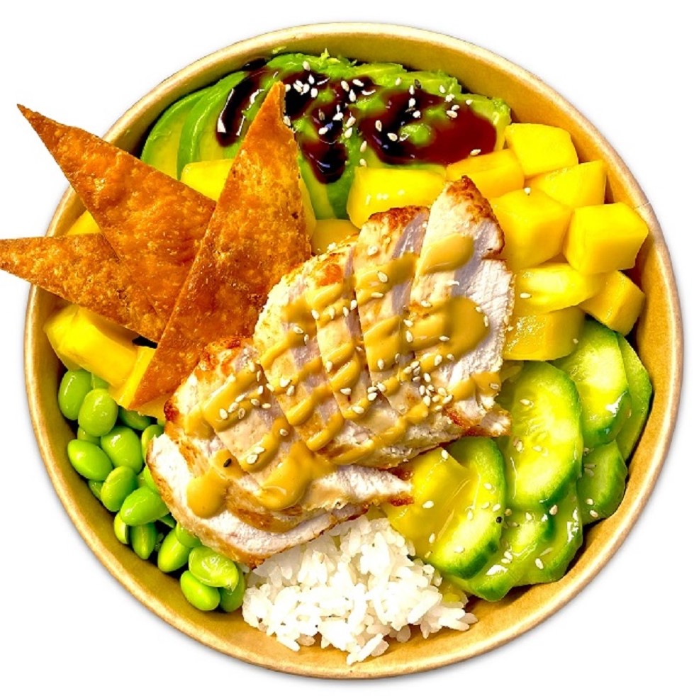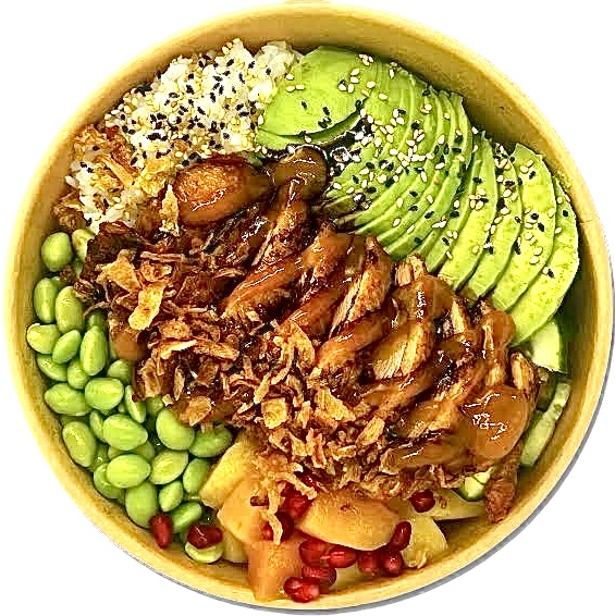 ![]() | Poké Bowl Chicken A,I,J,K miruSUSHI-Reis, Chickenstreifen, Mango, Red Chili Crumbs, Edamame, Avocado, Gurke, Granatapfelkerne, Teriyaki-Batasosu und Mango-Chili-Sauce | |