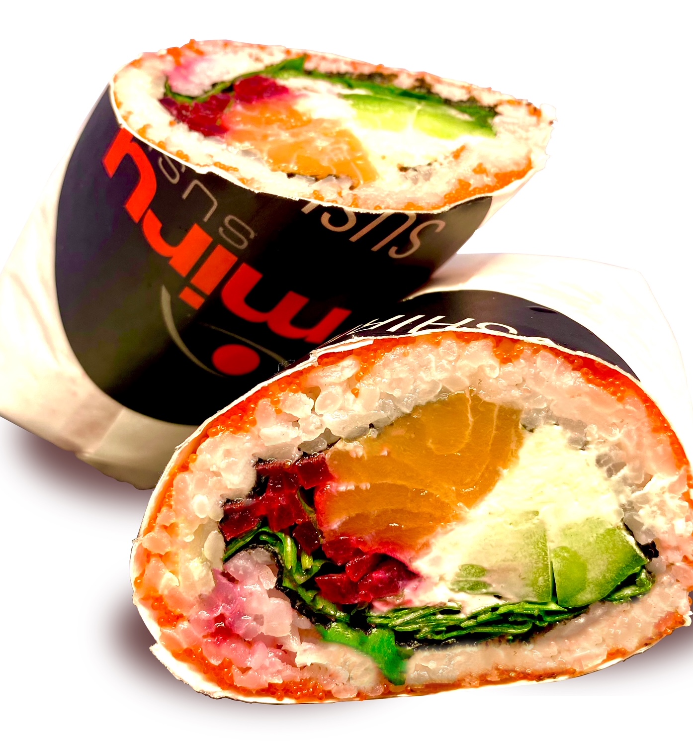 Leckerer miruSUSHI-Reis umhüllt frische Zutaten: genießt unsere Sushirritos als Snack zu Hause, in der Arbeitspause oder unterwegs - Itadakimasu!