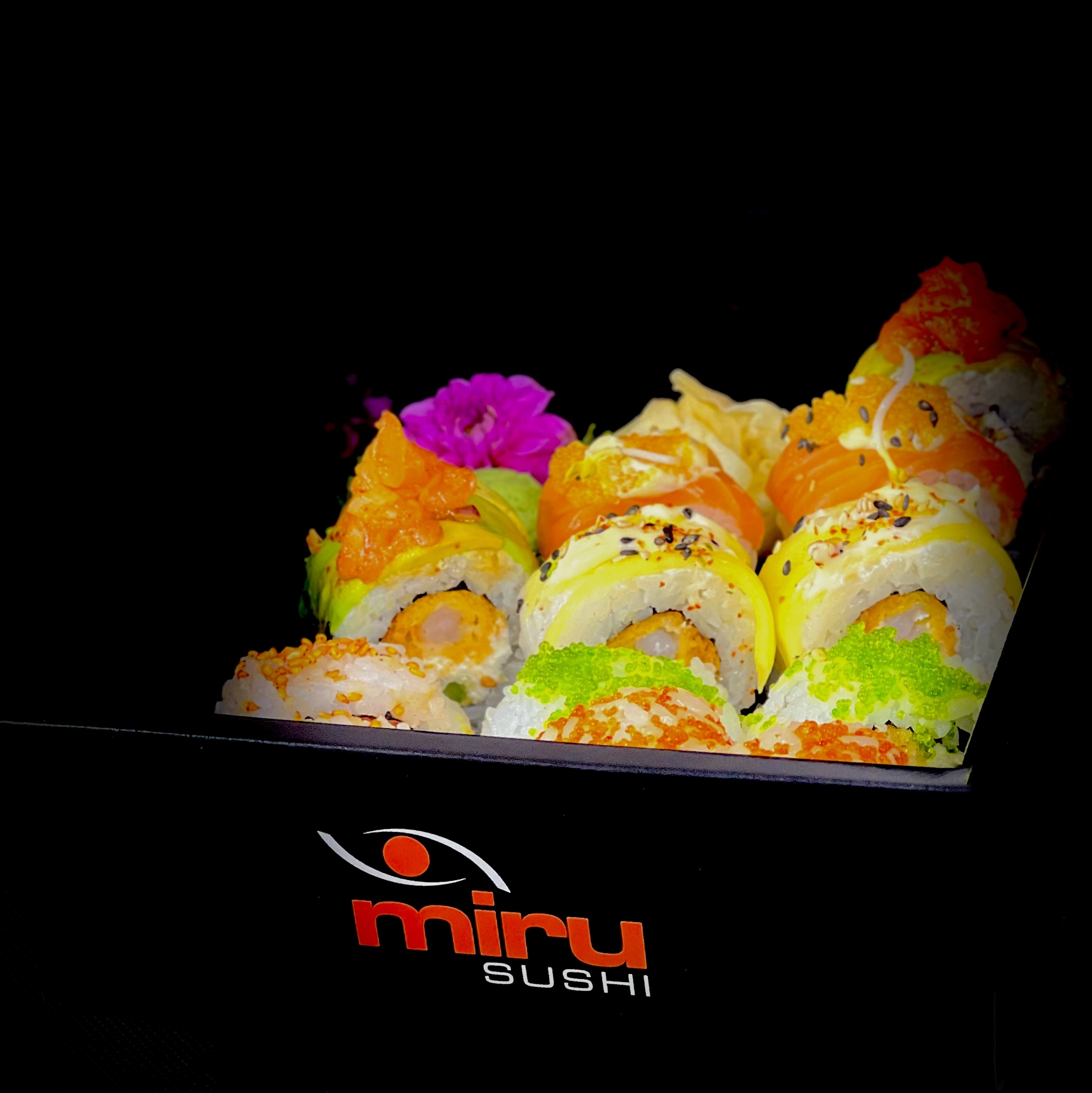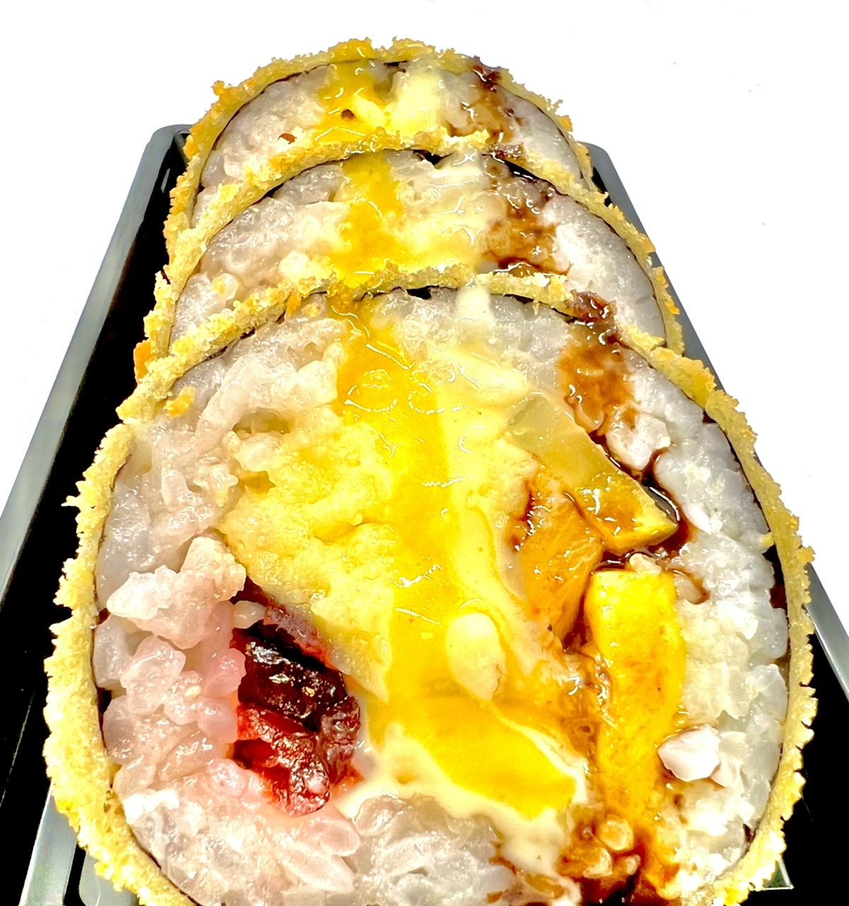 ![]() | miruDESSERT Rolle - 3er Frische Mango, frische Granatapfelkerne, Vanillesahnecreme, miruSUSHI-Reis - als Tempura mit Vanille-, Schoko- und Chilimangosoße getoppt | |
