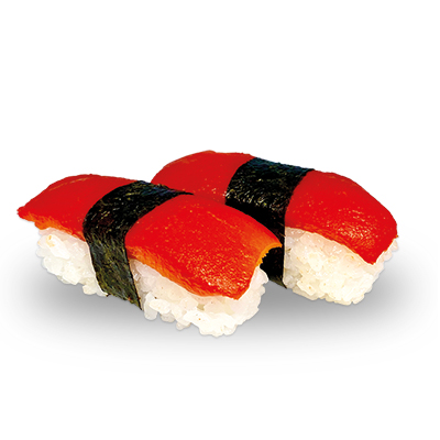 ![]() | Paprika Nigiri 2Stk. mit Teriyaki lasierten roten Paprika | |