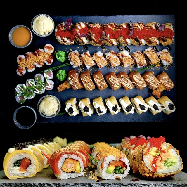 | Gakushi's Dream 3, 9, A, D, G, J, Sushirrito mit Wasabi-Lachscreme, Tempuragarnelen, Avocado, Rote Beete, Rucola und Teriyakisauce | ||